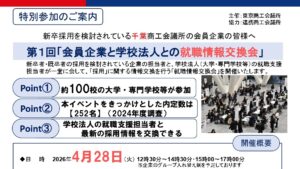 【4/28開催】2026年度 第1回「会員企業と学校法人との就職情報交換会」の参加企業募集(申込は1/13~2/16)※申し込みHPはまだ準備中ですNew!!