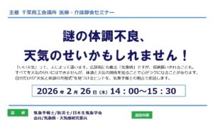 【2/26開催】医療・介護部会主催「謎の体調不良、天気のせいかもしれません!」現役気象予報士による気象病セミナーのご案内(申込は2/13まで)New!!