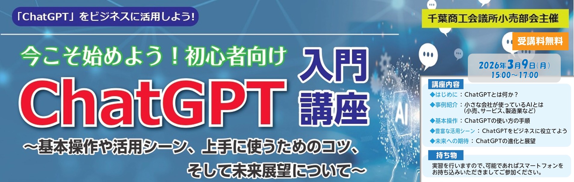【3/9開催】小売部会主催オープンセミナー「今こそ始めよう!ChatGPT入門講座」開催のご案内